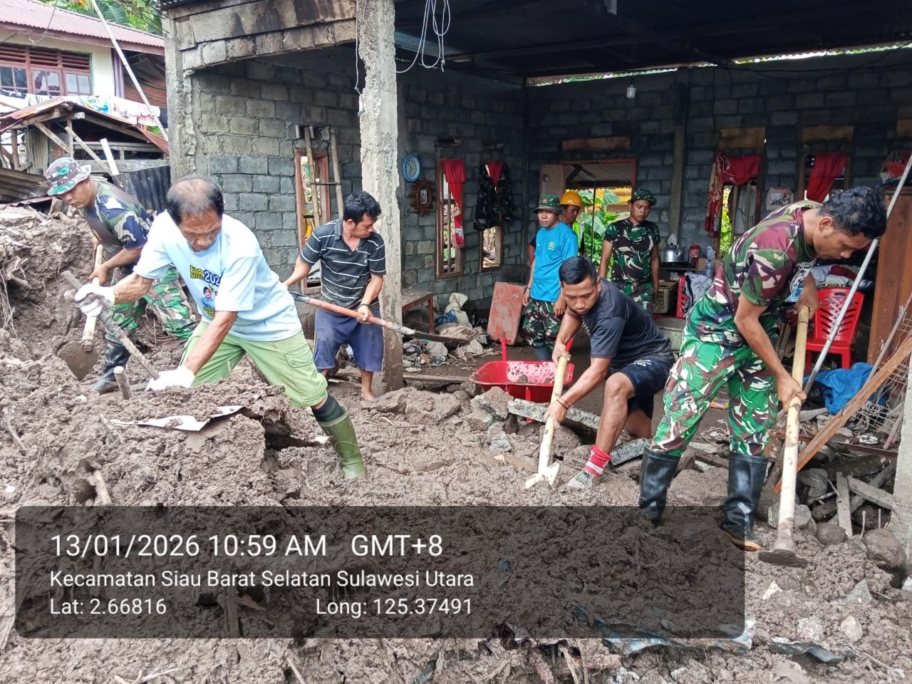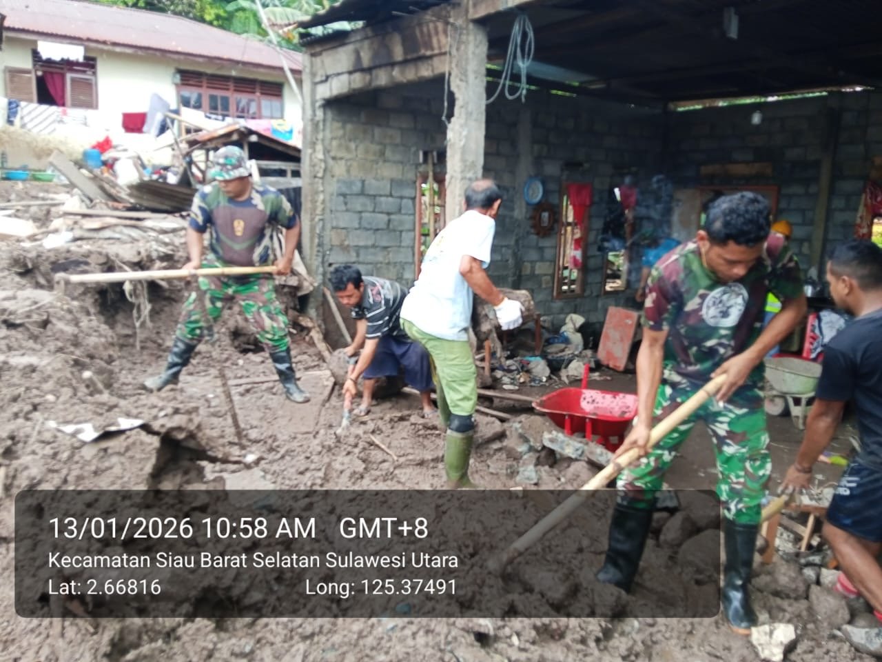 Sitaro, MANADONEWS.CO.ID – Kepedulian terhadap warga terdampak bencana banjir bandang terus ditunjukkan oleh Satuan Tugas Penanggulangan Bencana Alam (Satgas Gulbencal) TNI. Pada Selasa (13/01/2026), Satgas Gulbencal melaksanakan kegiatan pembersihan rumah warga di Keluarga Bawole Pagase, Kecamatan Siau Timur Barat Selatan, Kabupaten Kepulauan Siau Tagulandang Biaro (Sitaro).