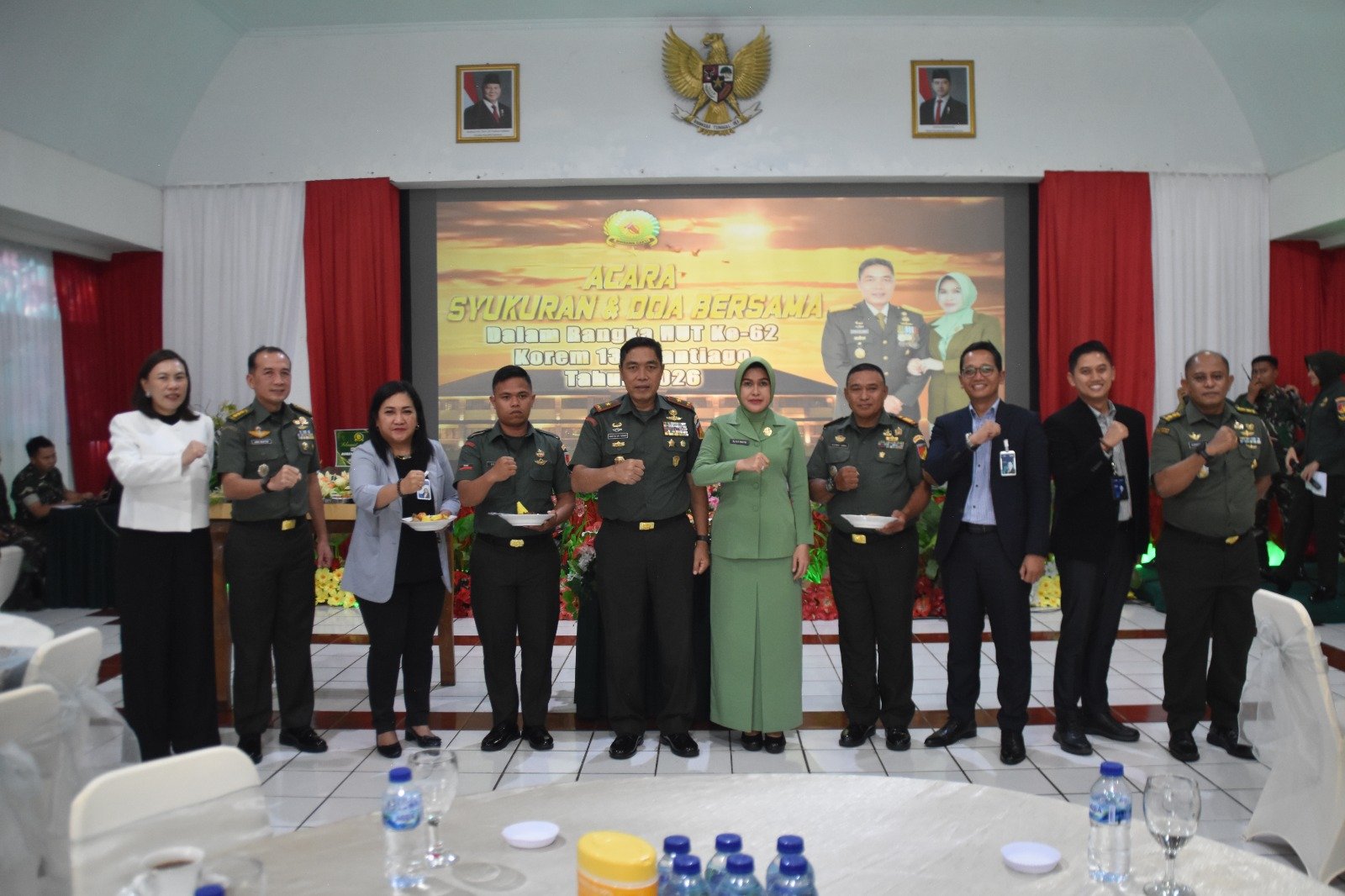 MANADO,MANADONEWS.CO.ID- Dalam suasana penuh kebersamaan dan rasa syukur, Korem 131/santiago menggelar acara syukuran Hari Ulang Tahun ke-62 bertempat di Aula Santiago Makorem 131/Santiago, Kota Manado, Sulawesi Utara, Senin (12/1/2026). Acara tersebut dipimpin oleh Danrem 131/Santiago Brigjen TNI Martin Susilo Martopo Turnip didampingi Ketua Persit KCK Koorcabrem 131 PD XIII/Merdeka Ny Ella Martin.