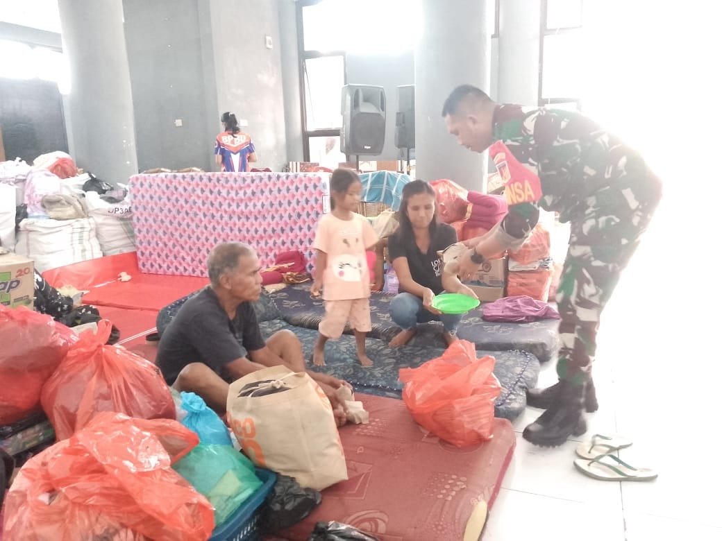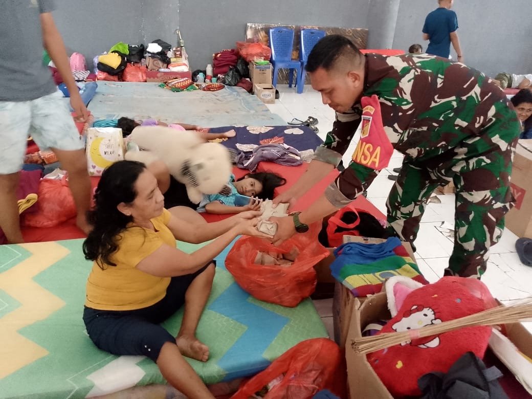 “Kami hadir untuk membantu masyarakat yang sedang mengalami musibah. Apa yang kami lakukan ini adalah wujud kepedulian TNI agar kebutuhan pengungsi, khususnya makanan, dapat terpenuhi dan mereka tetap merasa diperhatikan,” ujar Pratu Exivalen.