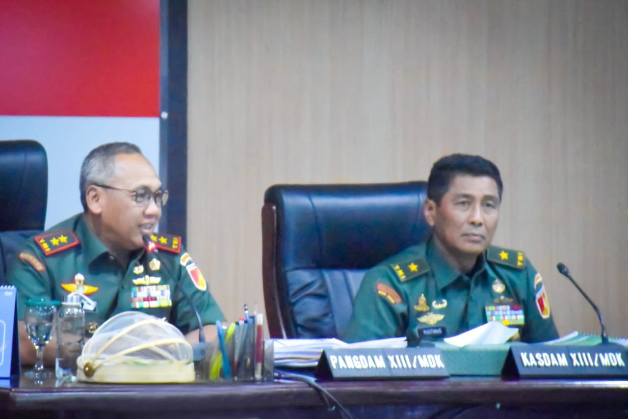 Rapat tersebut diikuti oleh Kasdam XIII/Merdeka Brigjen TNI Yustinus Nono Yulianto, Irdam XIII/Merdeka Brigjen TNI Esy Suharto, Kapoksahli Pangdam XIII/Merdeka Brigjen TNI Saptono Syiwarudi, Danrem 131/Santiago Brigjen TNI Martin Susilo Martopo Turnip, Danrem 133/Nani Wartabone Brigjen TNI Hardo Sihotang, Danrindam XIII/Merdeka Brigjen TNI Wempie Ramandei, Asrendam XIII/Merdeka Kolonel Inf Samsul Huda, para Asisten Kasdam dan Kabalak Kodam XIII/Merdeka, Lo TNI AU Kolonel Pas Morets Bonte, dan para Dansat jajaran Kodam XIII/Merdeka.