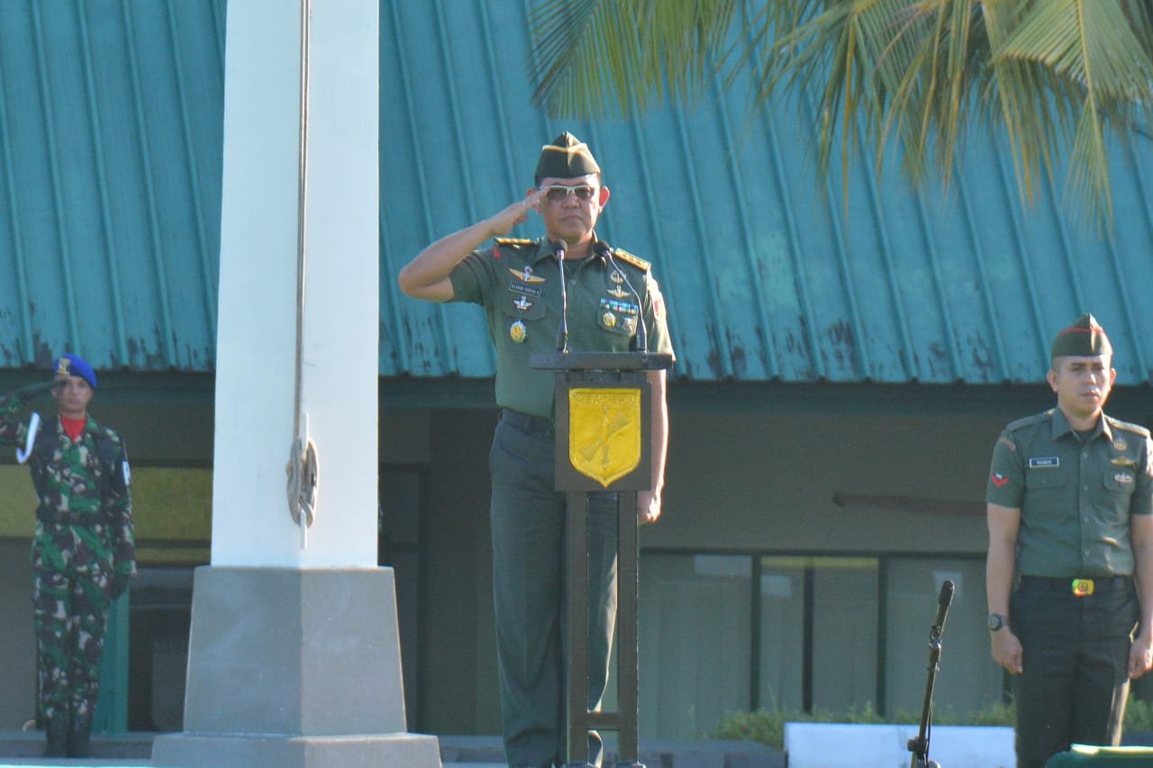Upacara kali ini dipimpin oleh Asops Kasdam XIII/Merdeka Kolonel Inf Elvino Yudha Kurniawan, diikuti oleh para Perwira, Bintara, Tamtama, serta Pegawai Negeri Sipil jajaran Makodam XIII/Merdeka.