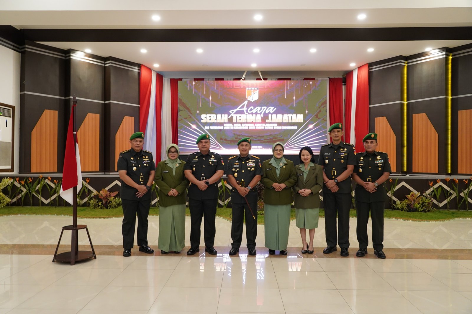 Acara yang berlangsung khidmat ini dirangkaikan dengan serah terima jabatan pengurus Persit KCK PD XIII/Merdeka yang dipimpin oleh Ketua Persit KCK Daerah XIII/Merdeka Ny Lely Mirza.