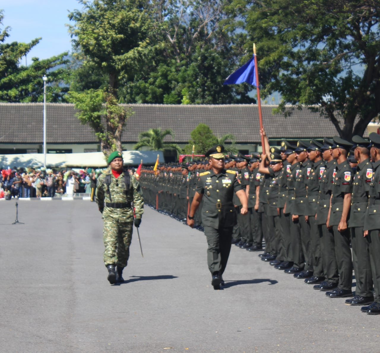 BITUNG,MANADONEWS.CO.ID– Komandan Rindam XIII/Merdeka Brigjen TNI Wempi Ramandei bersama Ketua Persit KCK Cabang X Rindam PD XIII/Merdeka Ny Levina Wempi menghadiri upacara pelantikan dan penyumpahan siswa Pendidikan Pertama Tamtama (Dikmata) Infanteri TNI AD Gelombang III Tahun 2025, Rabu (4/2/2026) di Secata Rindam XIII/Merdeka, Kota Bitung.