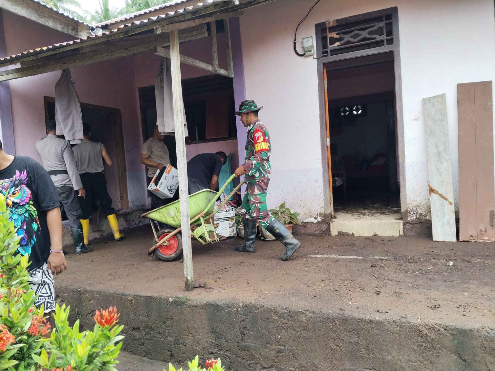 “Kami hadir bersama Polsek dan masyarakat untuk membantu membersihkan rumah warga agar bisa segera ditempati kembali. Ini bagian dari tugas Babinsa untuk selalu berada di tengah masyarakat, terlebih saat mereka membutuhkan bantuan,” ujar Sertu Geral.