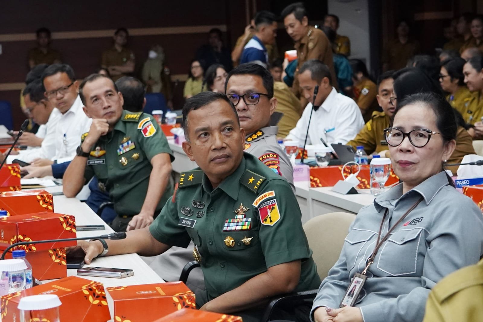 MANADO,MANADONEWS.CO.ID- Kapoksahli Pangdam XIII/Merdeka Brigjen TNI Saptono Syiwarudi bersama Kasrem 131/Santiago Kolonel Inf Agus Wahyudi Irianto menghadiri kegiatan High Level Meeting se-Provinsi Sulawesi Utara yang dilaksanakan di Ruang Tondano Kantor Perwakilan Bank Indonesia Provinsi Sulawesi Utara, Kota Manado, (23/2/2026).
