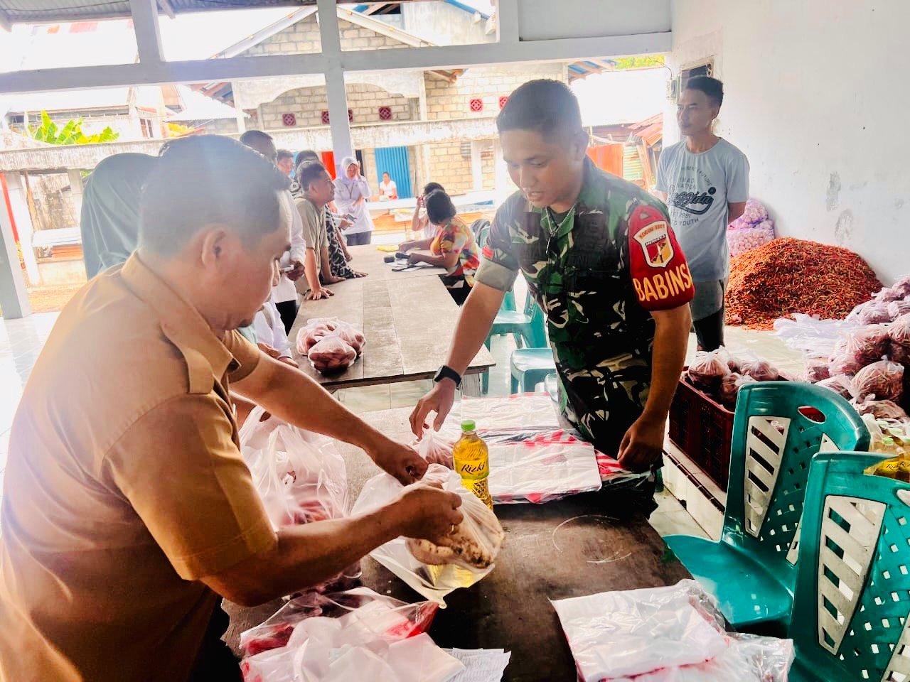 Dalam kegiatan tersebut, Babinsa turut melakukan pengawasan serta pendampingan guna memastikan pelaksanaan pasar murah berjalan tertib, aman, dan tepat sasaran bagi masyarakat yang membutuhkan.