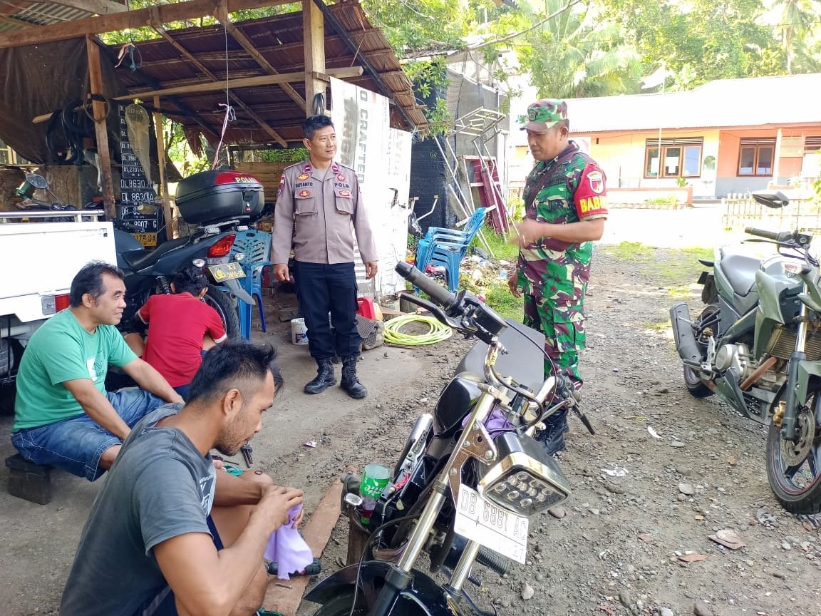 TAHUNA, MANADONEWS.CO.ID – Babinsa Koramil 1301-06/Kendahe, Serka Jenly Carlos, bersama anggota Polsek Kendahe melaksanakan komunikasi sosial (komsos) dalam rangka menjaga ketertiban dan kenyamanan masyarakat, Sabtu (4/4/2026).
