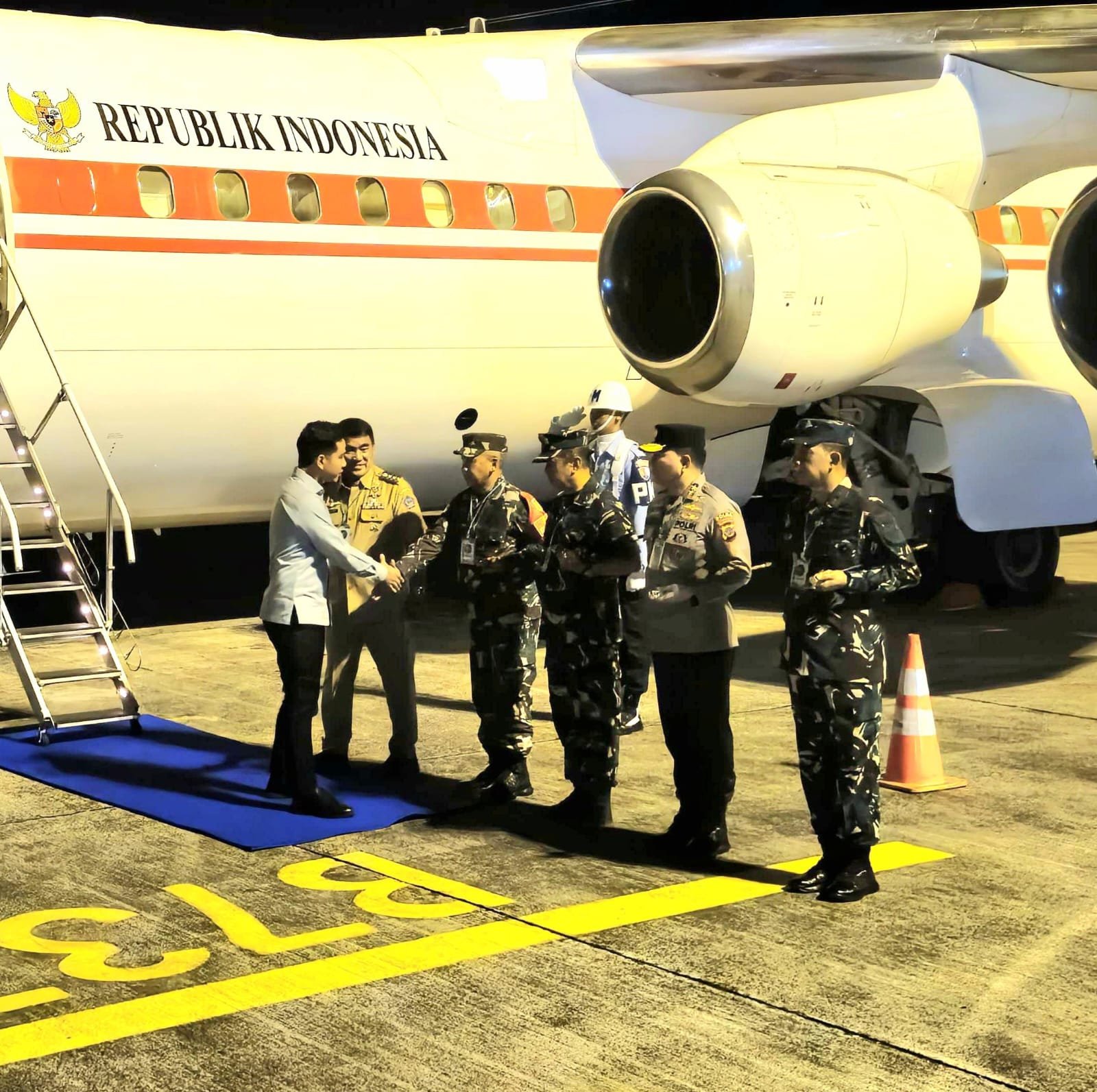 Wapres Gibran Rakabuming Raka beserta rombongan tiba di Bandara Sam Ratulangi menggunakan pesawat khusus Kepresidenan dari Bandara Kupang.